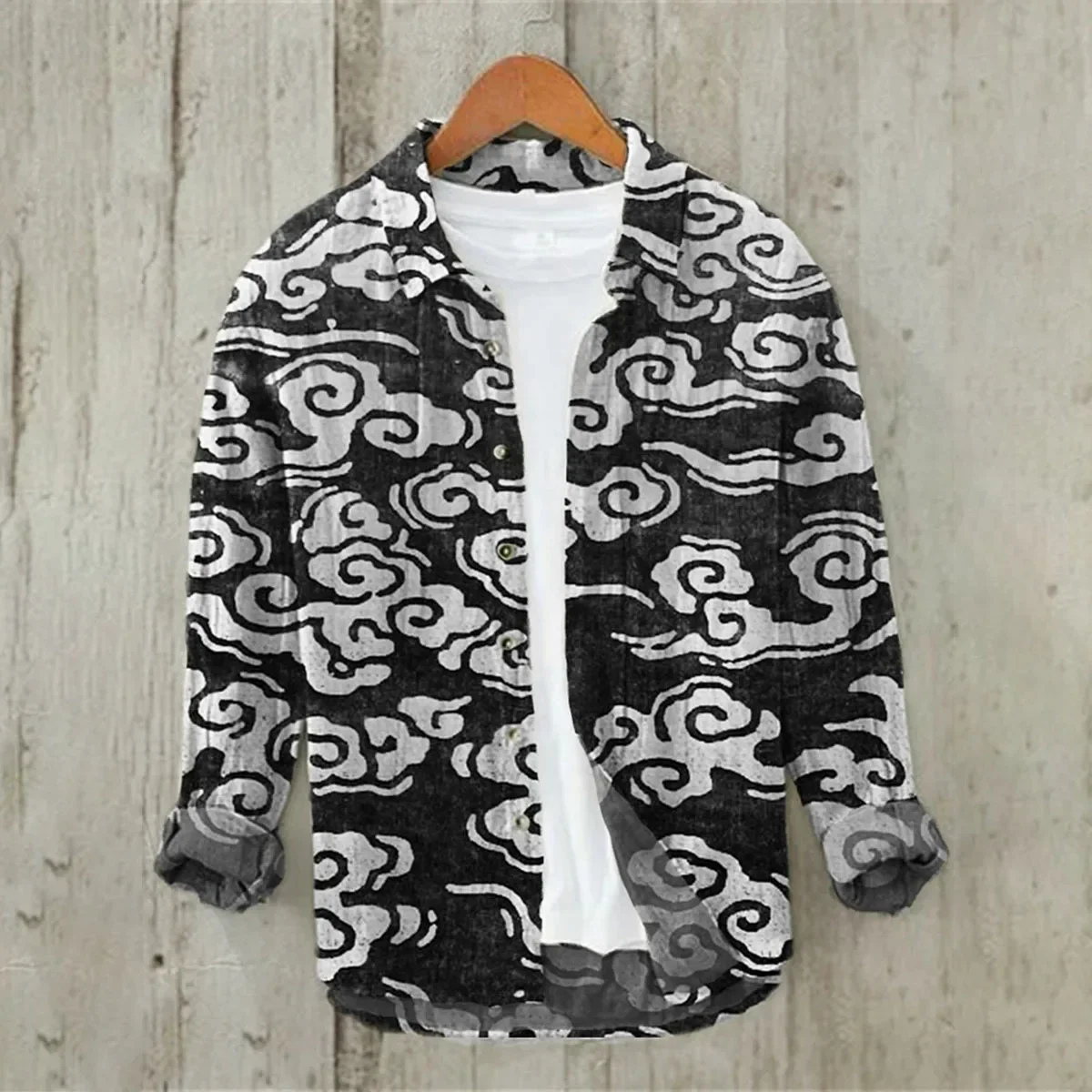 2024 Men's 3D Printed Pattern Lapel Top Casual Loose Retro Long Sleeved Shirt New Fashion Design Harajuku men's Shirt S-5XL
