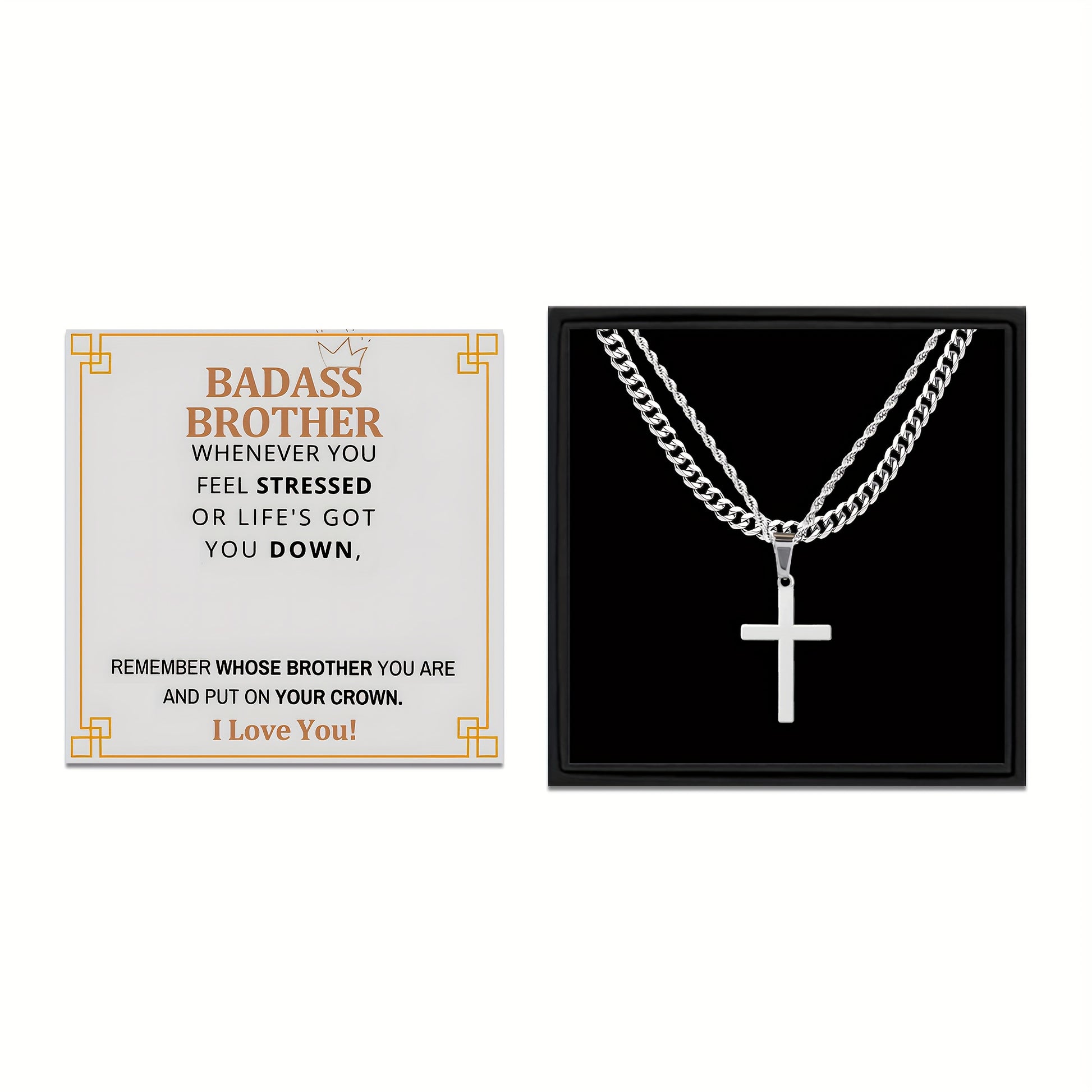 3pcs To My Brother Handmade Rope Cross Pendant Cuba Necklace Father's Day Gift For Him Gift Box Hip Hop Titanium Steel Gift for Him Man Father Best Dad Women Mother's Day Jewelry Waterproof Fashion Trendy Simple Jewelry birth