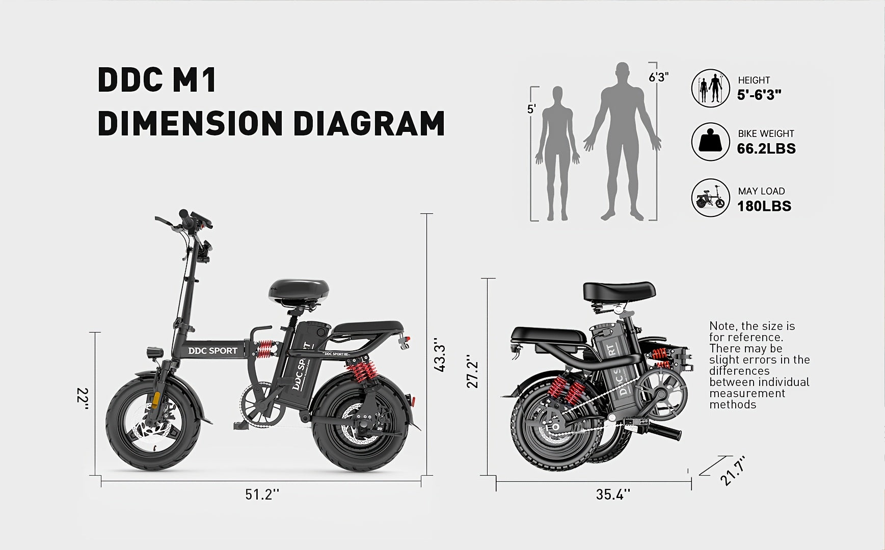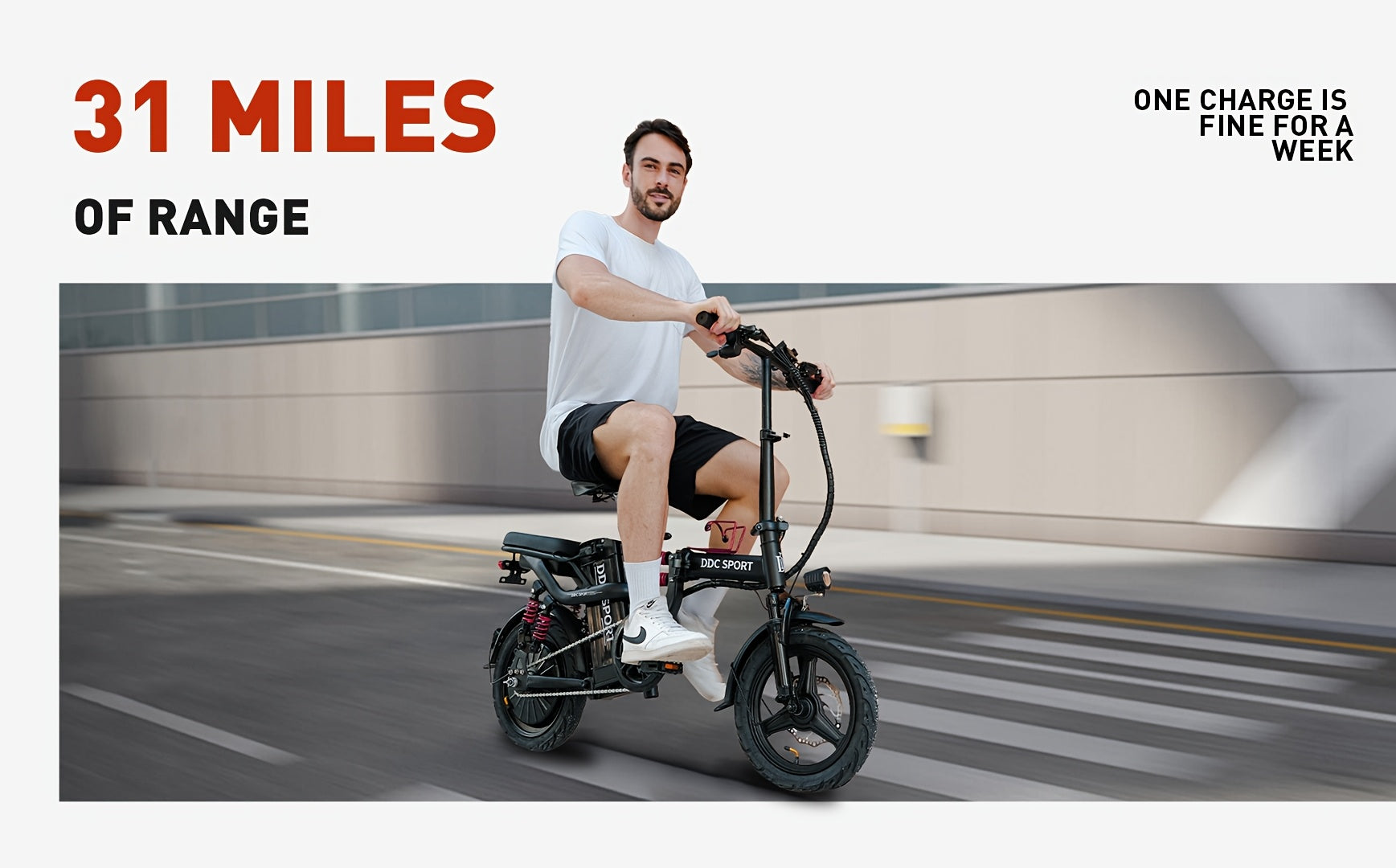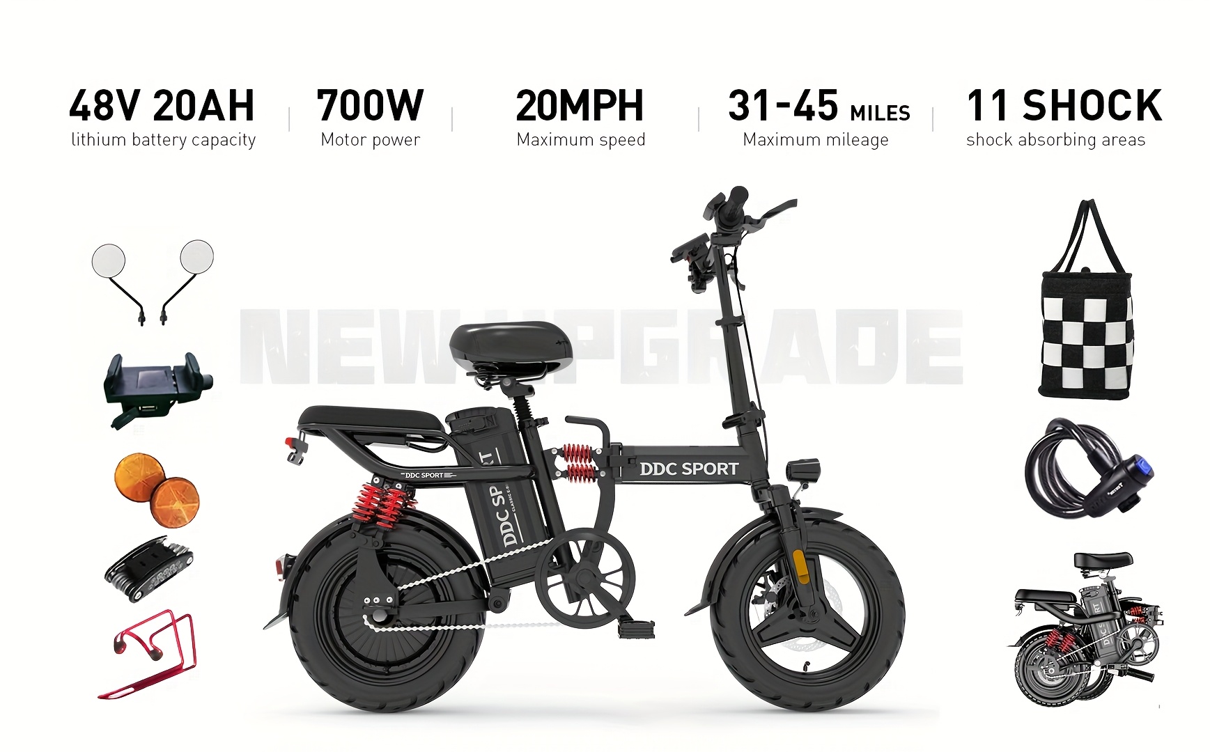 740W Peak Motor, 20 MPH Speed, 48V20Ah Lithium Battery, DDC M1 Electric Bike for Adults, Max Range 40 Miles, Cruise Control, 3-step Folding, 11 Shock, 14 Inch Tires, Commuting, Gifts for Youngster, School, Commuting, Weekend