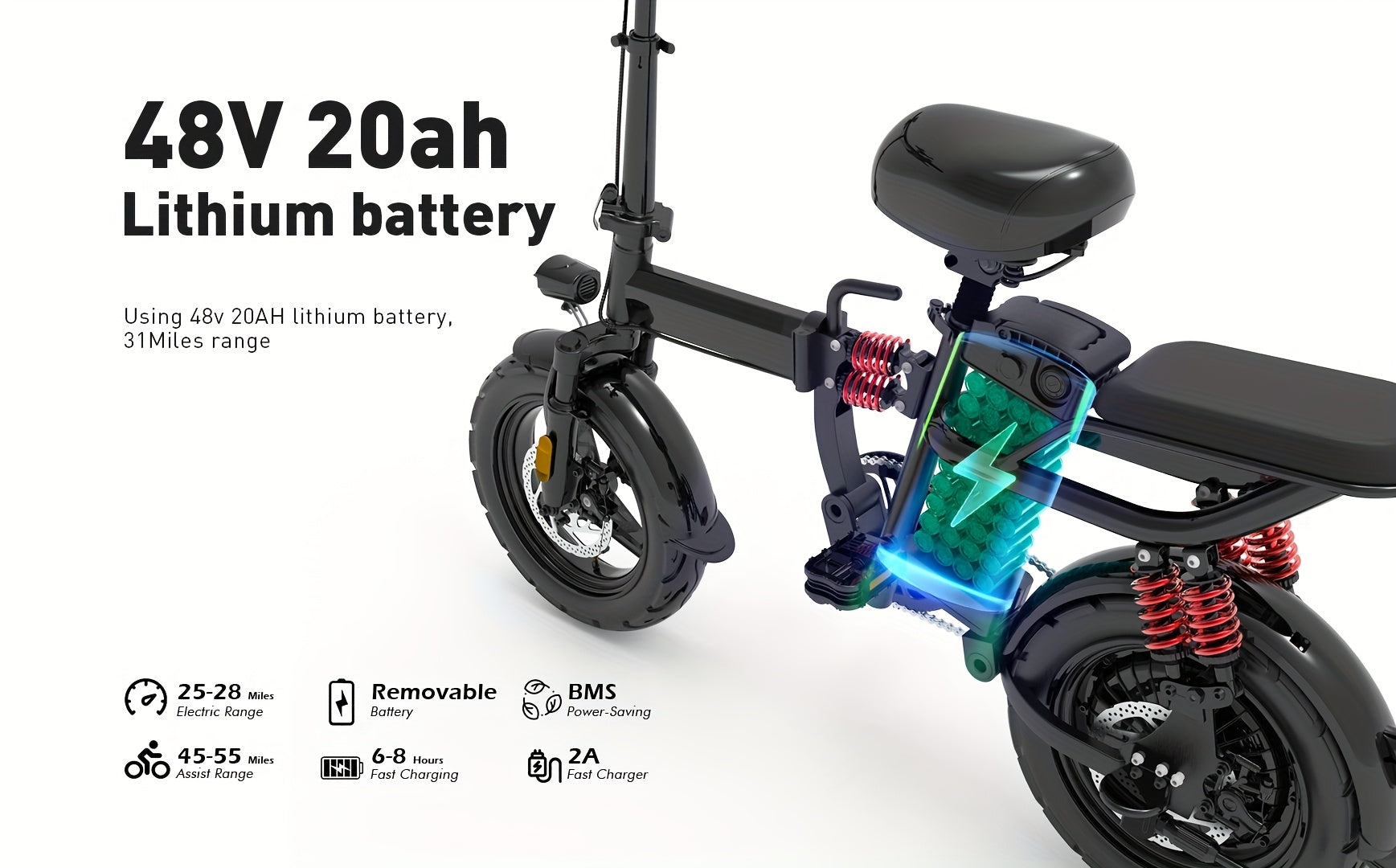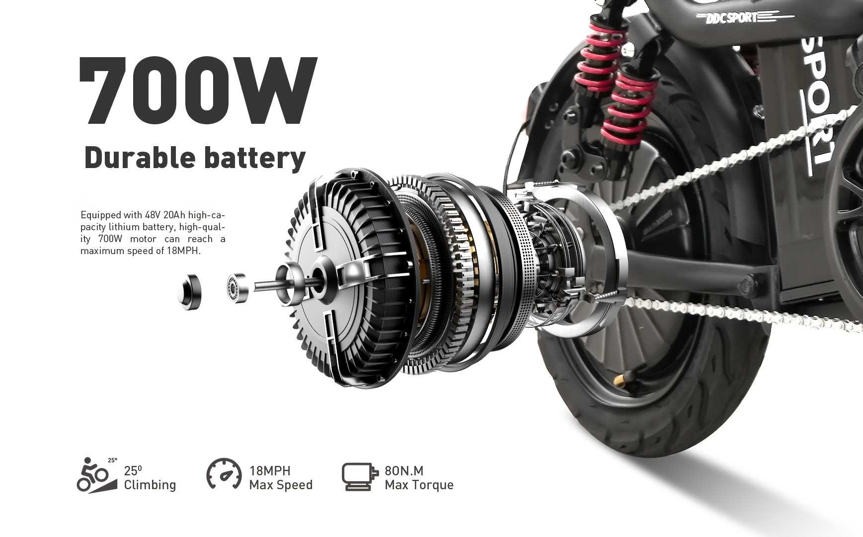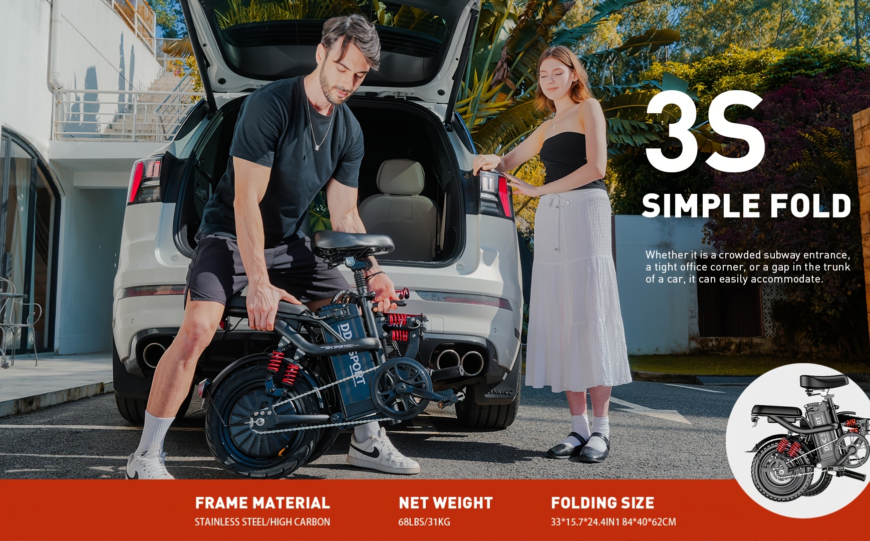 740W Peak Motor, 20 MPH Speed, 48V20Ah Lithium Battery, DDC M1 Electric Bike for Adults, Max Range 40 Miles, Cruise Control, 3-step Folding, 11 Shock, 14 Inch Tires, Commuting, Gifts for Youngster, School, Commuting, Weekend