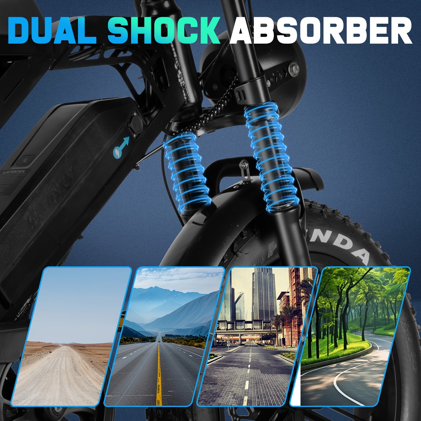 Besintu V20pro Electric Bike for Adults - 19MPH, 30-40 Miles Range, Hydraulic Brakes, 749W Motor, Detachable 48V 15.6AH Battery, Rear Seat, Commuter Mountain Bike with Front Fork Suspension, 7 Gears, 20"x4" Tires - Black