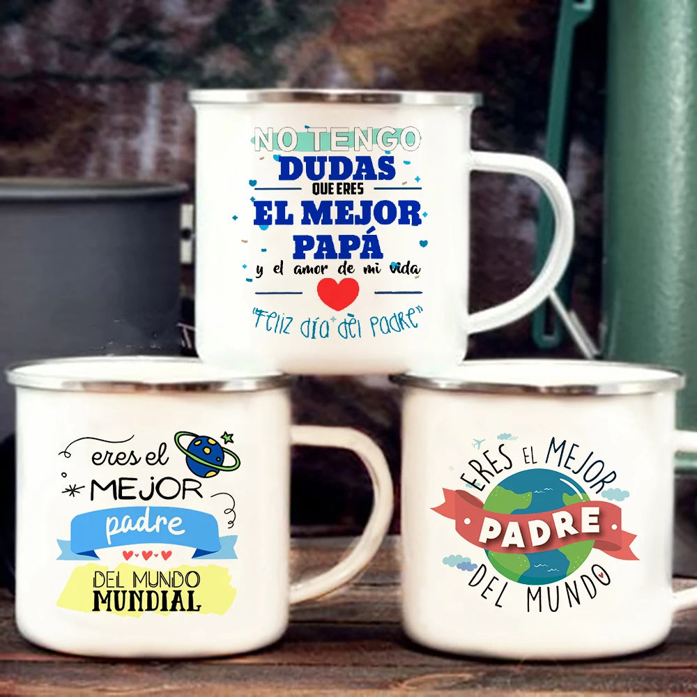 Best Father in The World Print Enamel Mug Creative Coffee Cups Drinks Water Cup Camping Mugs Birthday Father's Day Gift for Dad