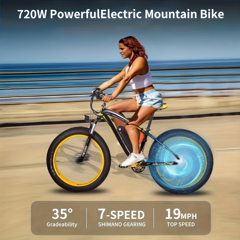 Electric Bike, 48V12.5A, 720W Brushless Motor, 7 Speed, Double Disc Brake, Use Snow, Road, Mountain Electric Bike 26*4 Fat Tire With LCD Screen, Mountain Bike