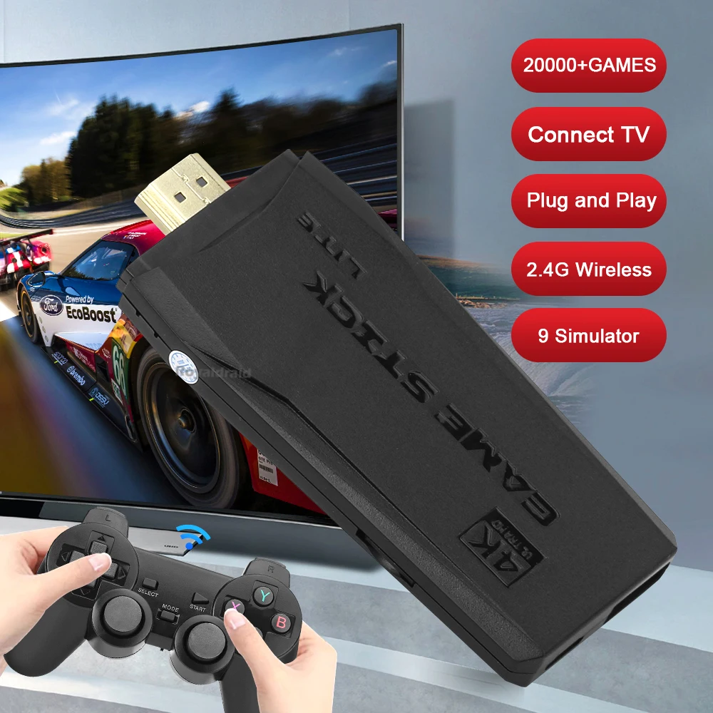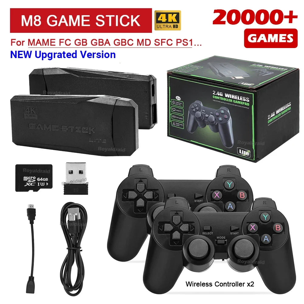 M8 4K Video Game Console 64G Built-in 20000 Games Retro Handheld Game Player 2 Wireless Controller Game Stick Children Xmas Gift
