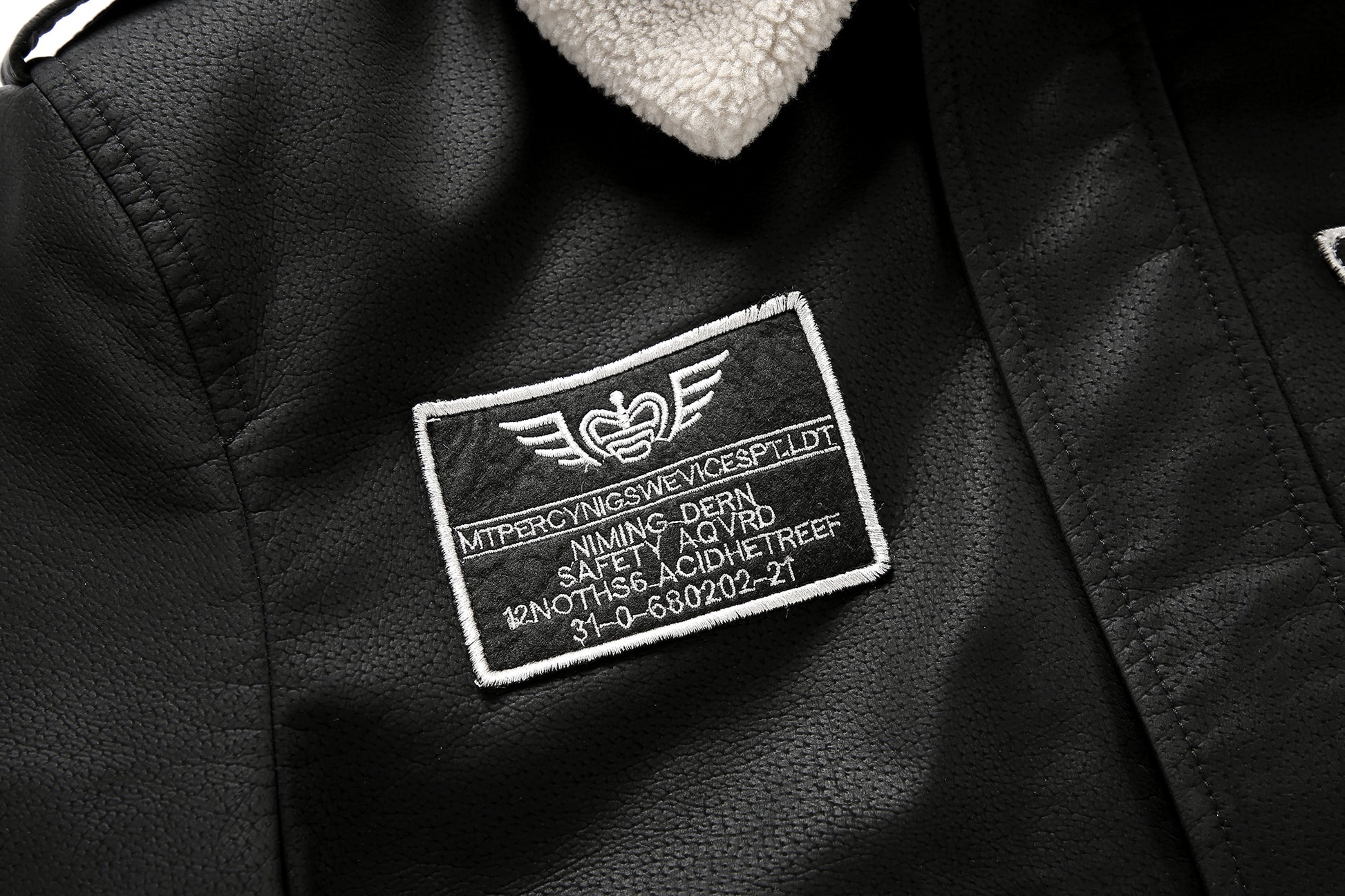 Men's Bomber Motorcycle Leather Jacket Vintage Fleece Faux Leather Jacket Gifts
