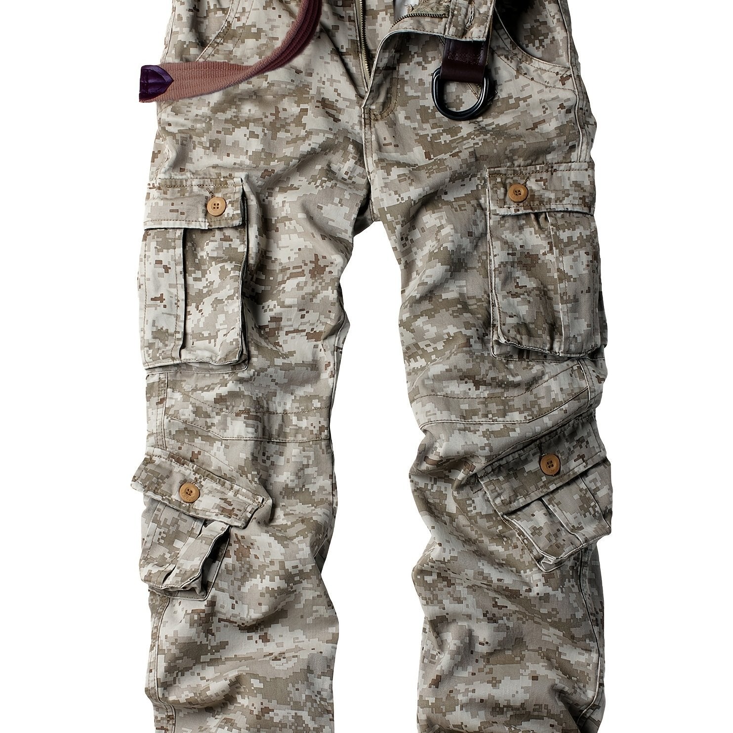 Men's Solid Cotton Camouflage Cargo Pants with Multiple Pockets Straight Leg Loose Fit Casual Outdoor Workwear for Hiking Fishing