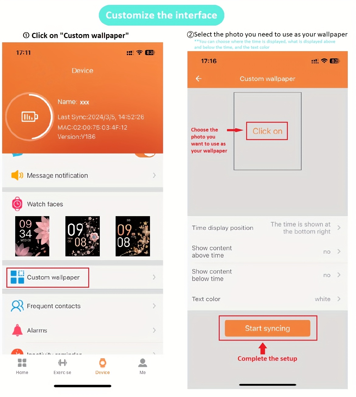 This smartwatch features an impressively bright 1.85-inch HD touchscreen, offering 5 different dials to select from, along with additional options available in the app. You can also personalize your dial with any image, like pictures of your family or pets. Please note: When you receive a software update notification in the app, it's advisable to update to the latest version for an improved experience!