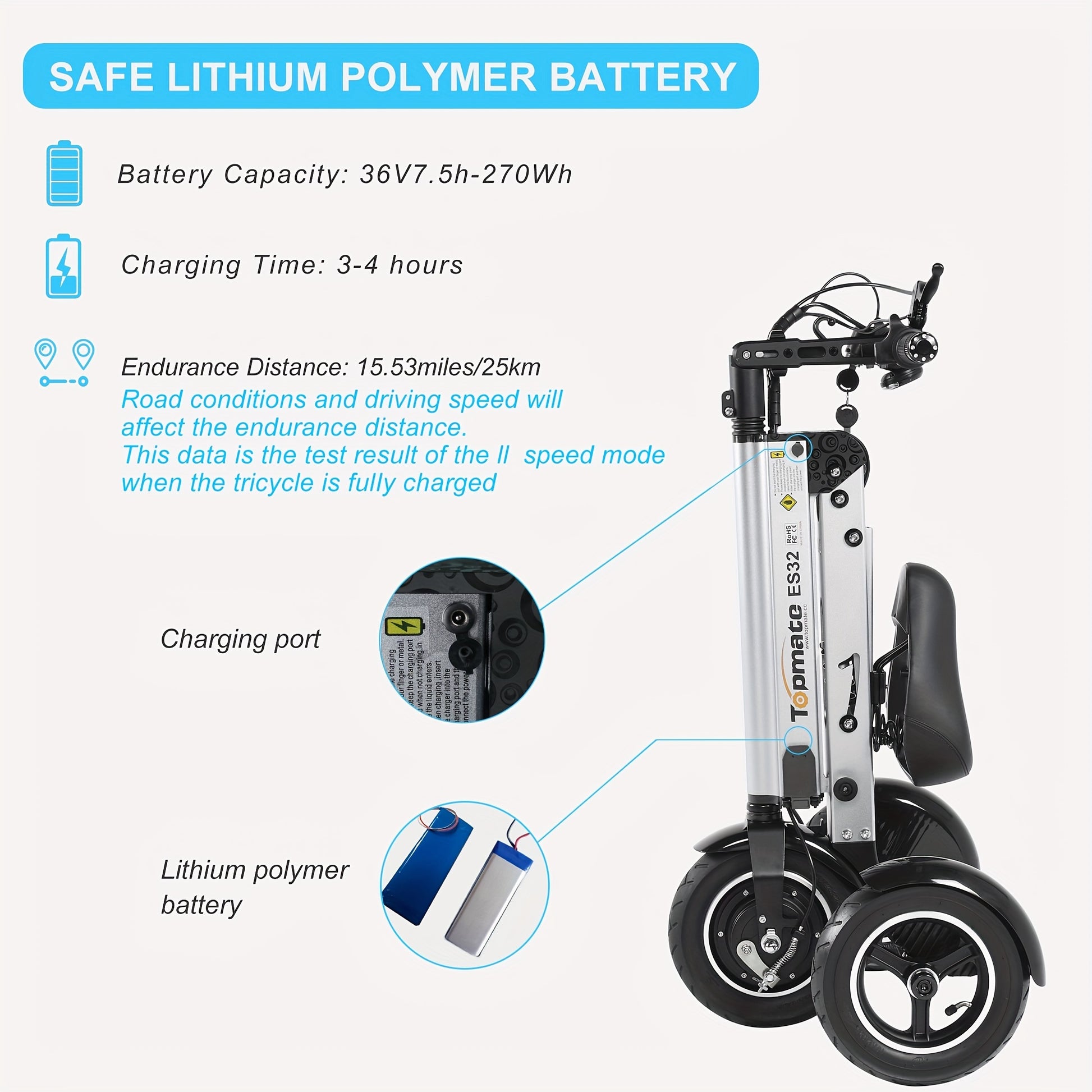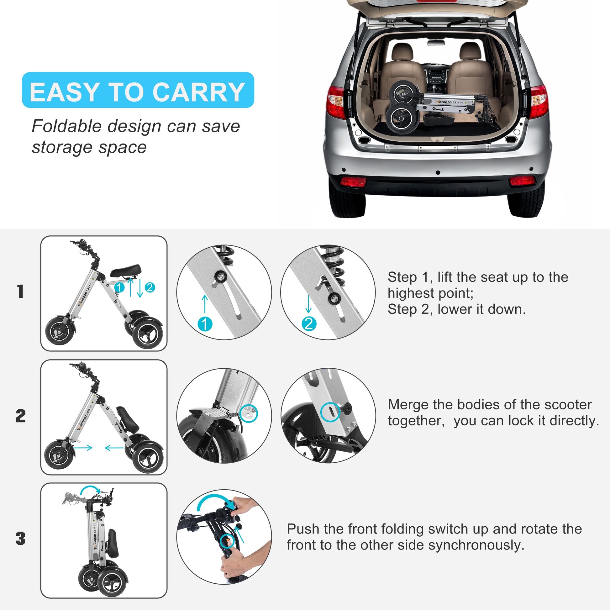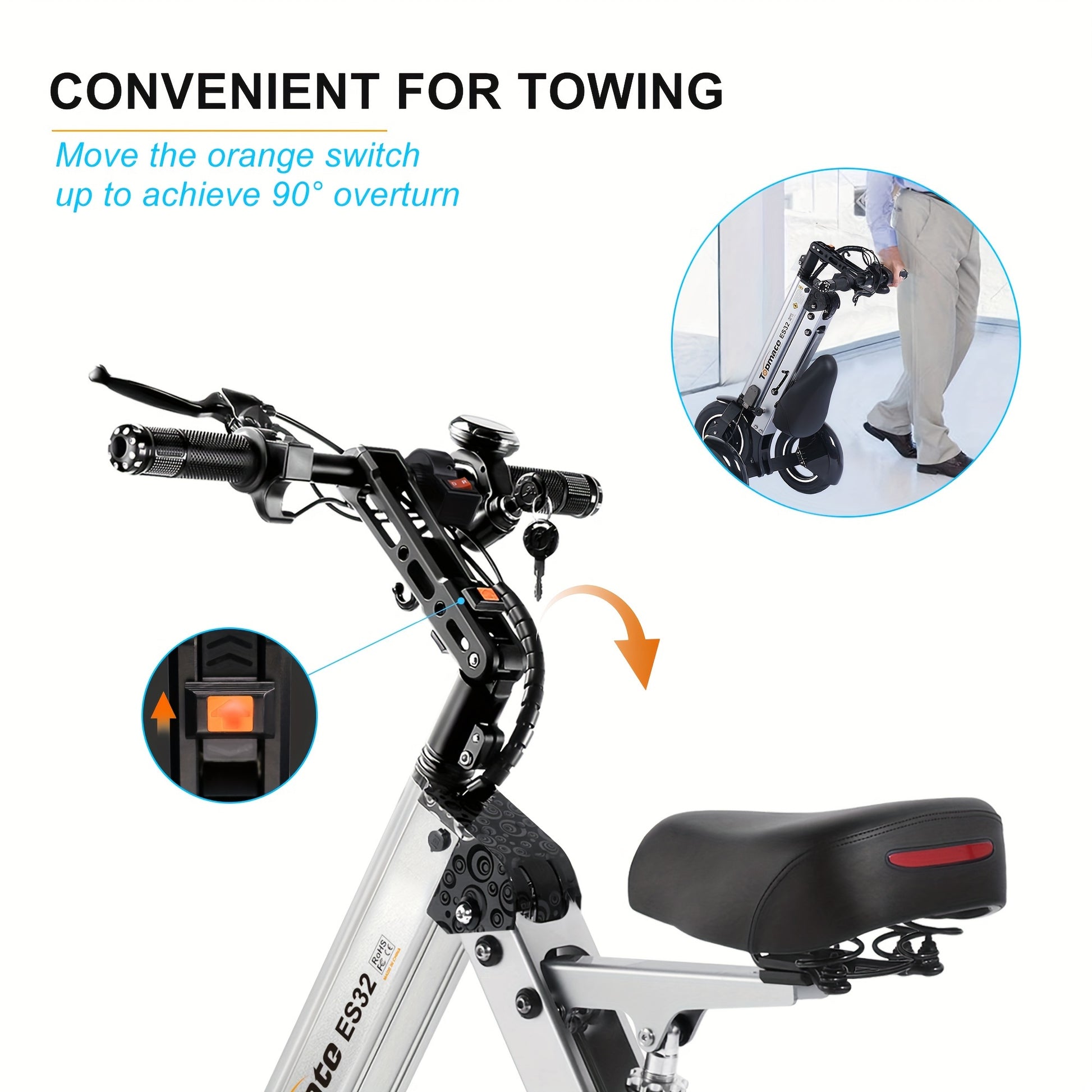 TopMate ES32 Electric Scooter 3 Wheels Foldable Trike with Seat for Adults, Light Weight Mobility with Reverse Function and Key Switch, 10 Inch Pneumatic Tires Tricycle for Commute and Travel