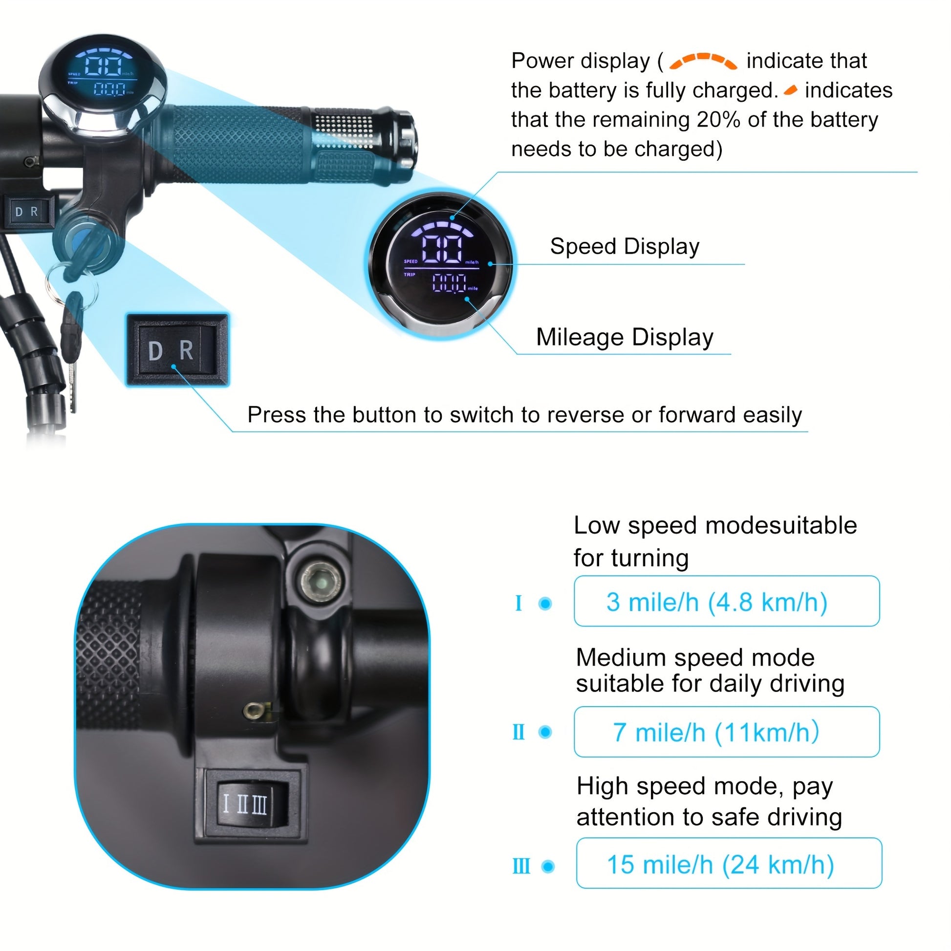 1.Please note that in order to prevent you from falling, the speed of the electric tricycle must not exceed 3.7mile/h when turning.