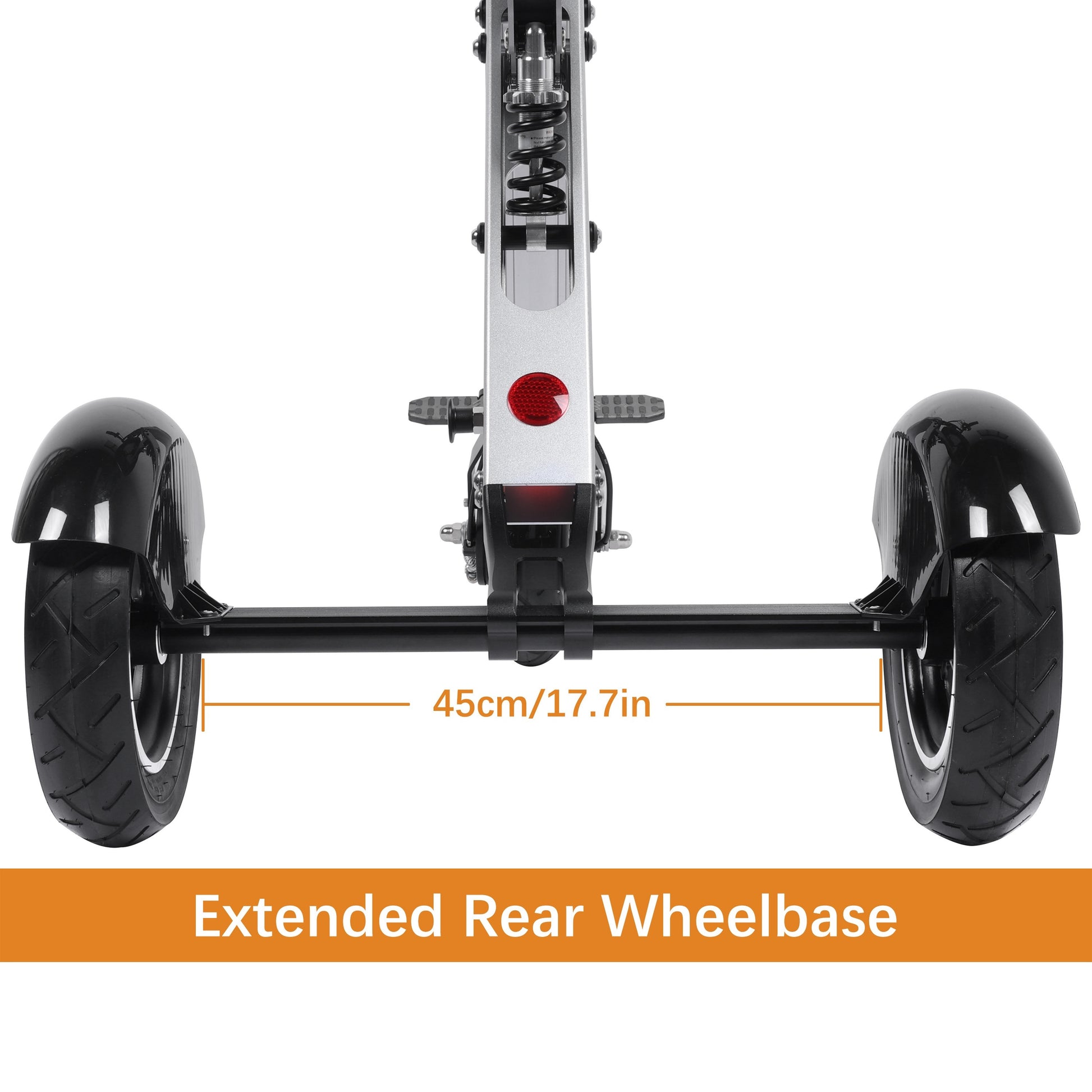 The electric scooter is equipped with shock absorbers. Even on rugged terrain or rough roads, it can make your riding safer and more stable.