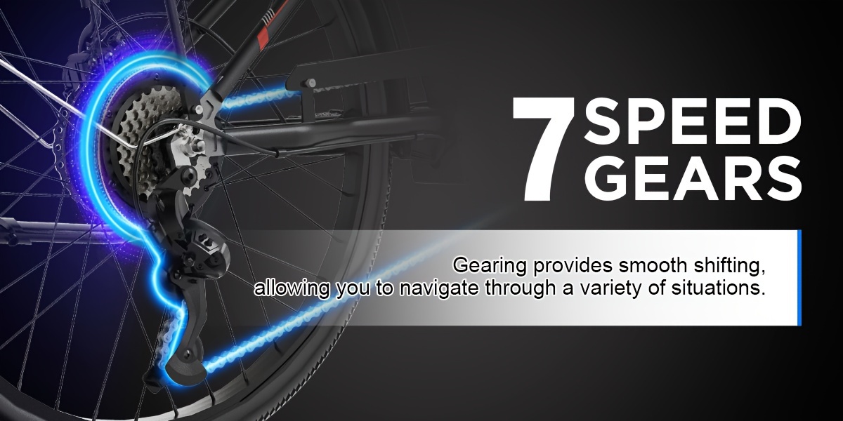 [3 Ride Modes & 7-Speed Gears]Totem electric bike has three riding modes: pedal assist, throttle and regular. You can choose the comfortable throttle mode or use regular to exercise during riding. 5 levels of pedal assist provide power while pedaling, making it easier for you to ride. 7-speed transmission provides smooth gear shifting, allowing you to handle various road conditions