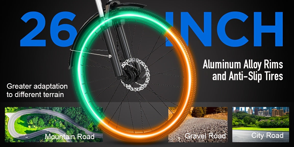 [High-Quality Frame & LCD Display]This electric bike frame is made of high-quality aluminum alloy. It is lightweight, durable and will not rust. The advanced suspension front fork configuration has a good shock absorption effect to make its riding experience better. The LCD smart display of the electric bike is backlit, ensuring that you can easily read the riding data even in low-light conditions