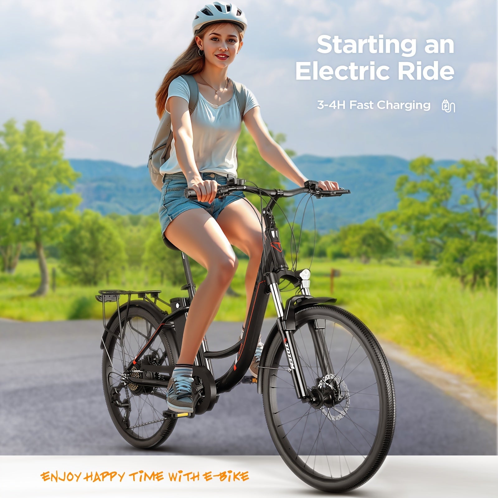 Totem Skyline 26" Electric Bike for Adults - 350W, Ideal for City Riding | 40-Mile Range, 20 MPH Top Speed, Fast Charge in 3H, 7-Speed Gears, Detachable Battery, Adjustable Seat