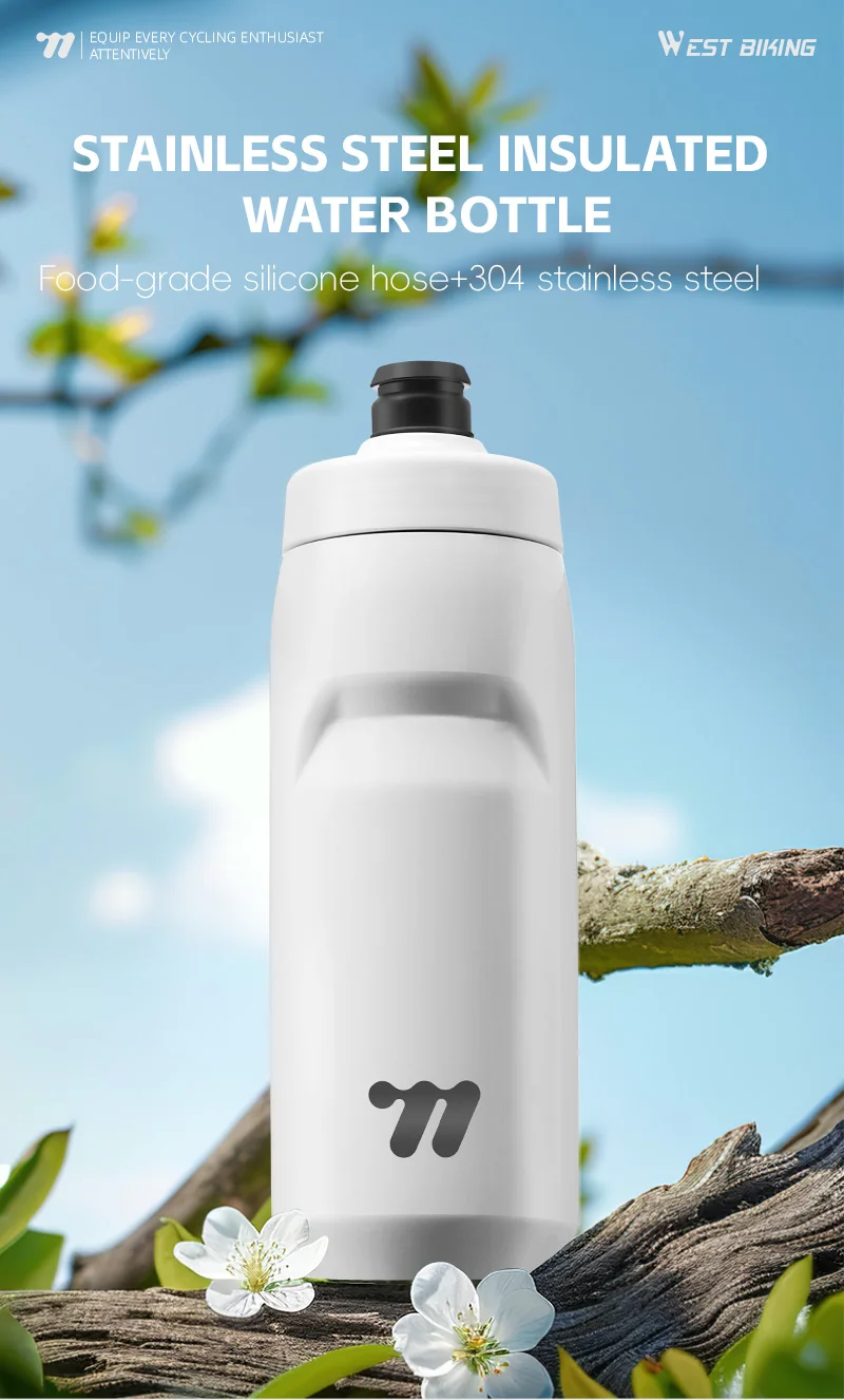 WEST BIKING Stainless Steel Insulated Sports Water Bottle 550ml Cycling Thermos Bottle Keep Cold&Hot Gym Portable Thermal Kettle