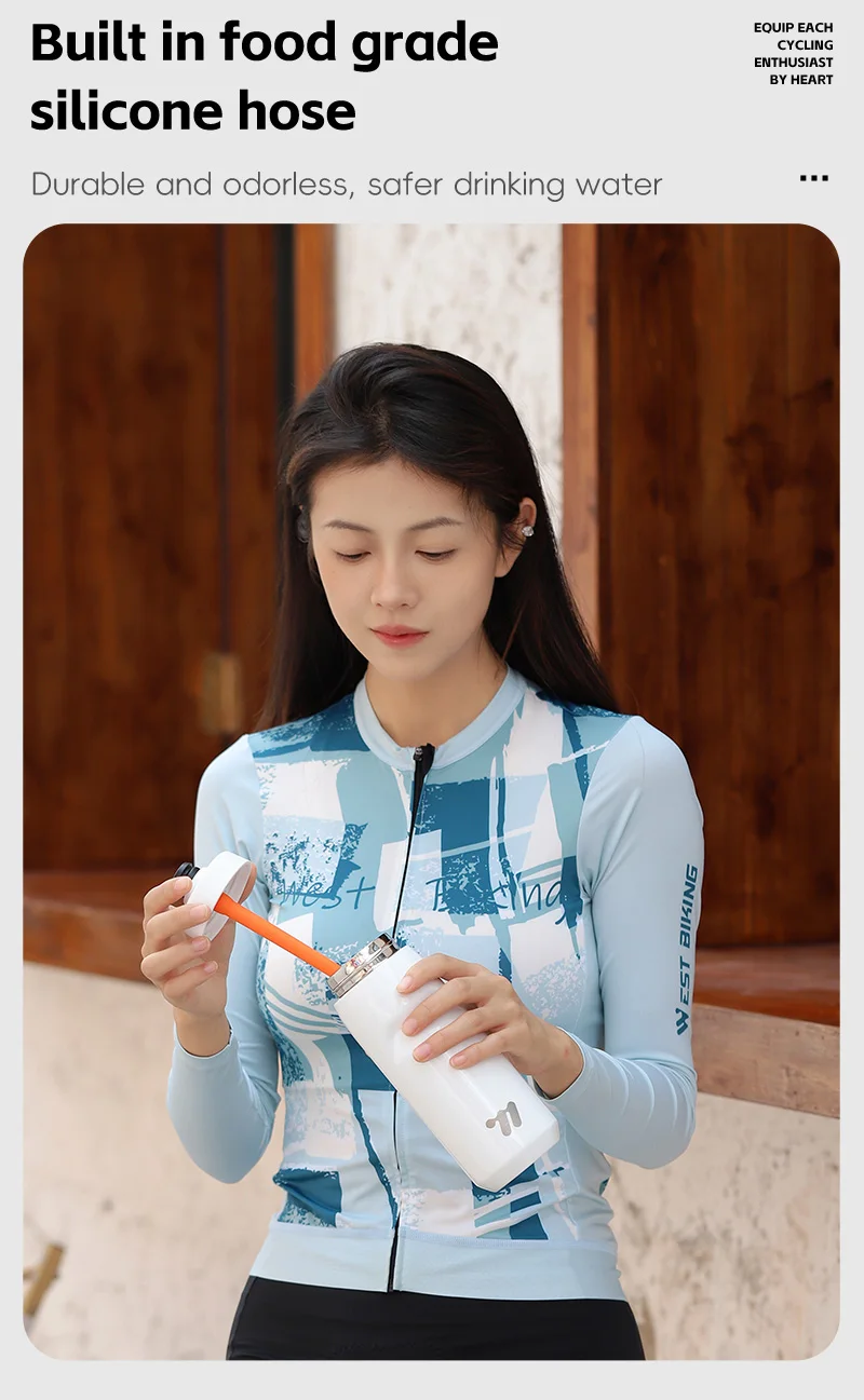 WEST BlKING Stainless steel insulated water bottle,550ml capacity,food-grade silicone hose+304 stainless steel ,safer drinking water.Double-layer vacuum design ensures the water bottle's heat preservation effect.Enlarged cup mouth design,wear-resistant paint on the surface,more scratch- resistant.Unique logo engraving process,equipped with dust lid and daily lid,three colors are available.When using the dust-proof lid, the recommended water temperature is around 55°C to prevent scalding and reflux.lf you need to store hot water at 70-100°C, we recommend using the daily use lid (the lid may be difficult to screw on due to air pressure)
